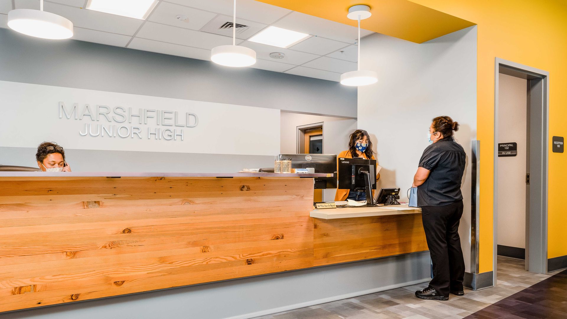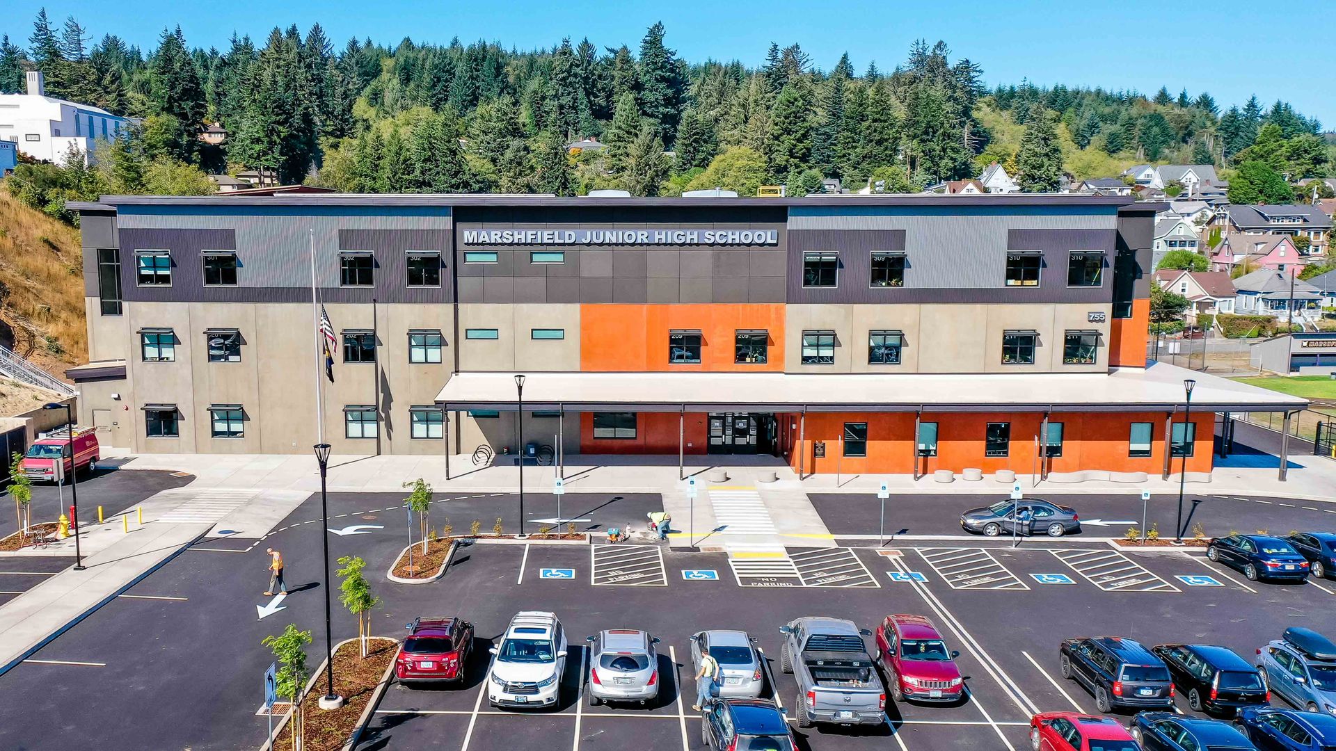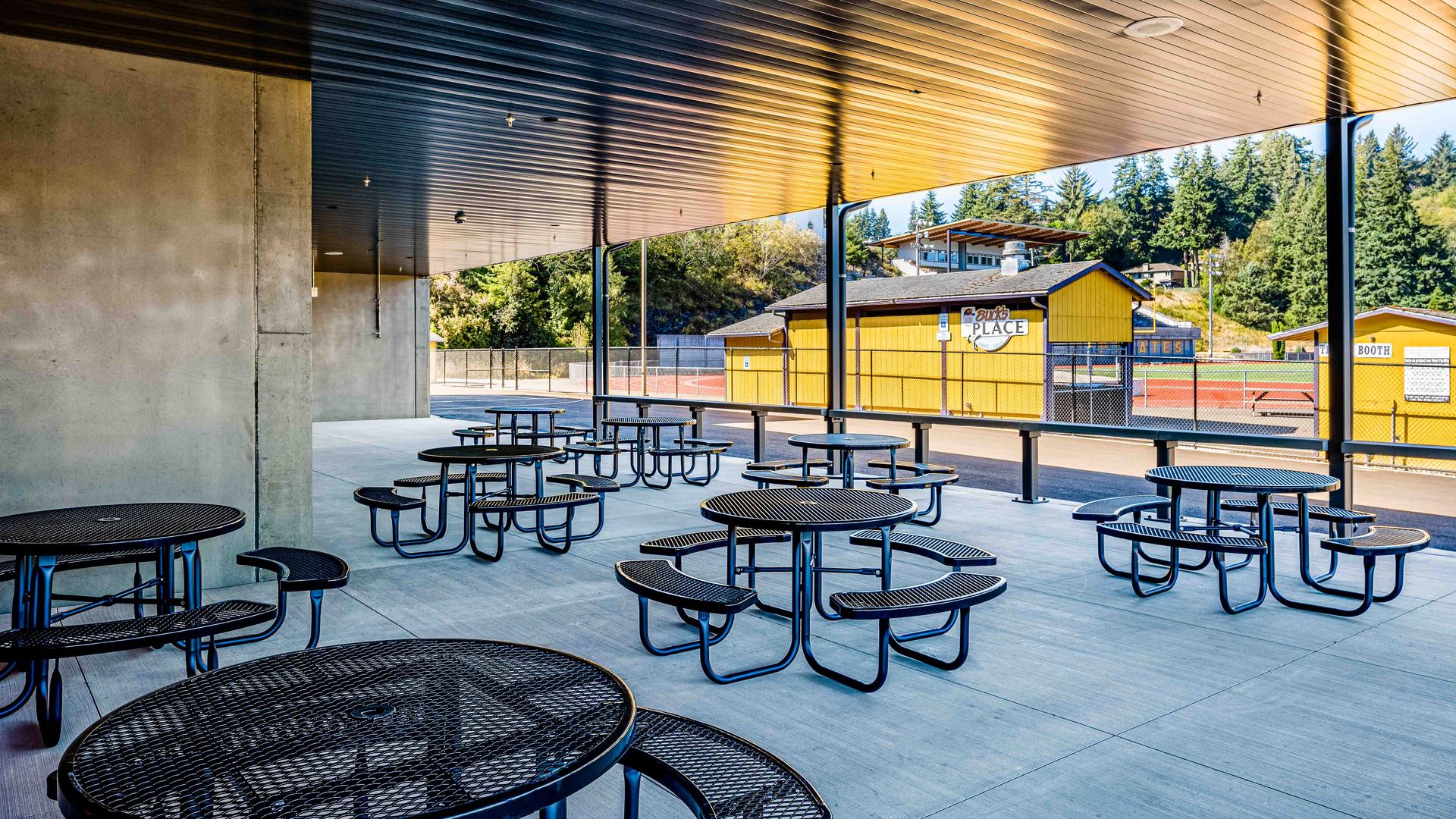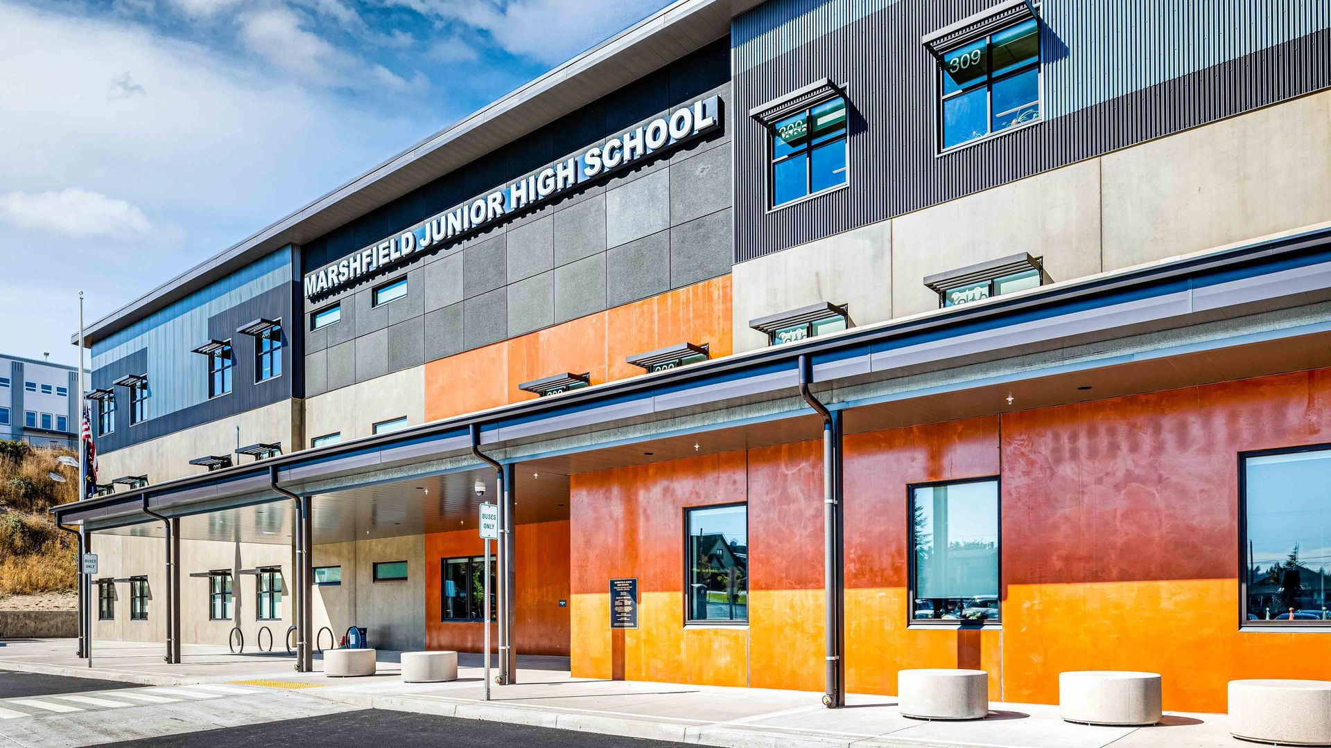 Located on a small site adjacent to the High School, stadium, playing fields and a steep slope, STEELE designed this new three-story sustainable pre-cast concrete school to improve access and efficiently link all the facilities and activities together.