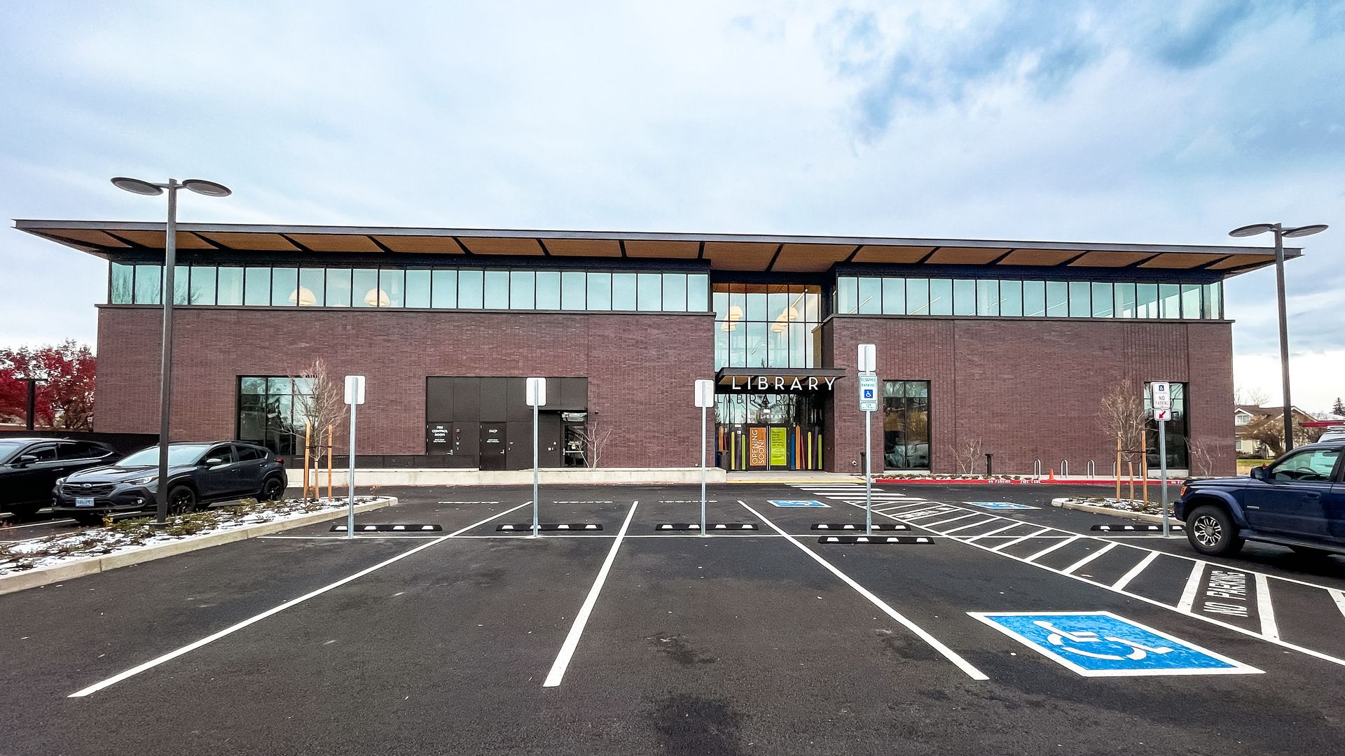 Solar panels are located on the library’s roof and cover parking lot stalls to provide energy for this net-zero building. Electric vehicle (EV) charging stations are available in the parking lot too. A drive-up window creates convenience for library customers to pick up and drop off materials. An extension of Redmond’s history walk shares important milestones and honors the people who made a difference for the Redmond library and community, and there is a generous covered patio for all ages to enjoy.