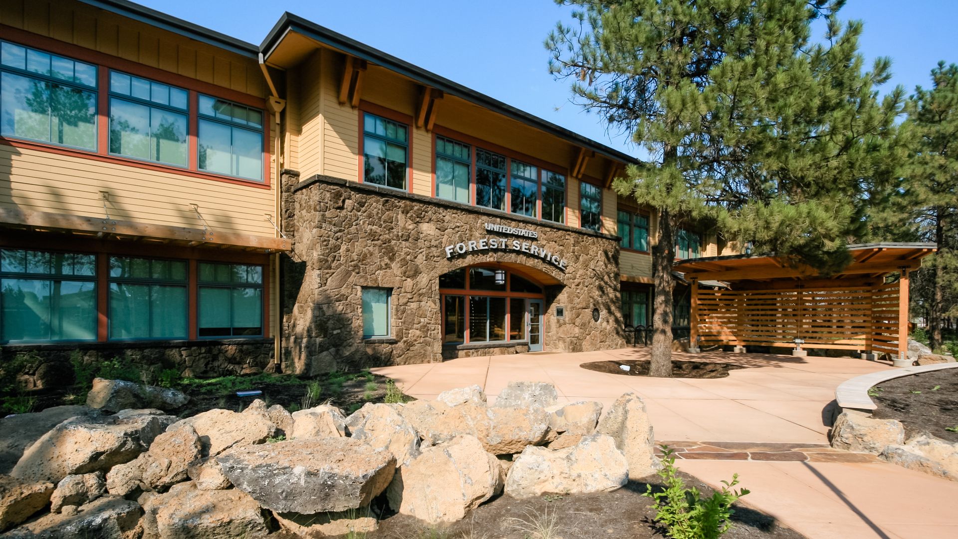 This 46,000 SF LEED Gold Certified building was designed to bring several US Forest Service departments together under one roof. The design is tailored to fit in with the local and regional influences, as well as the design guidelines required by the Forest Service.
