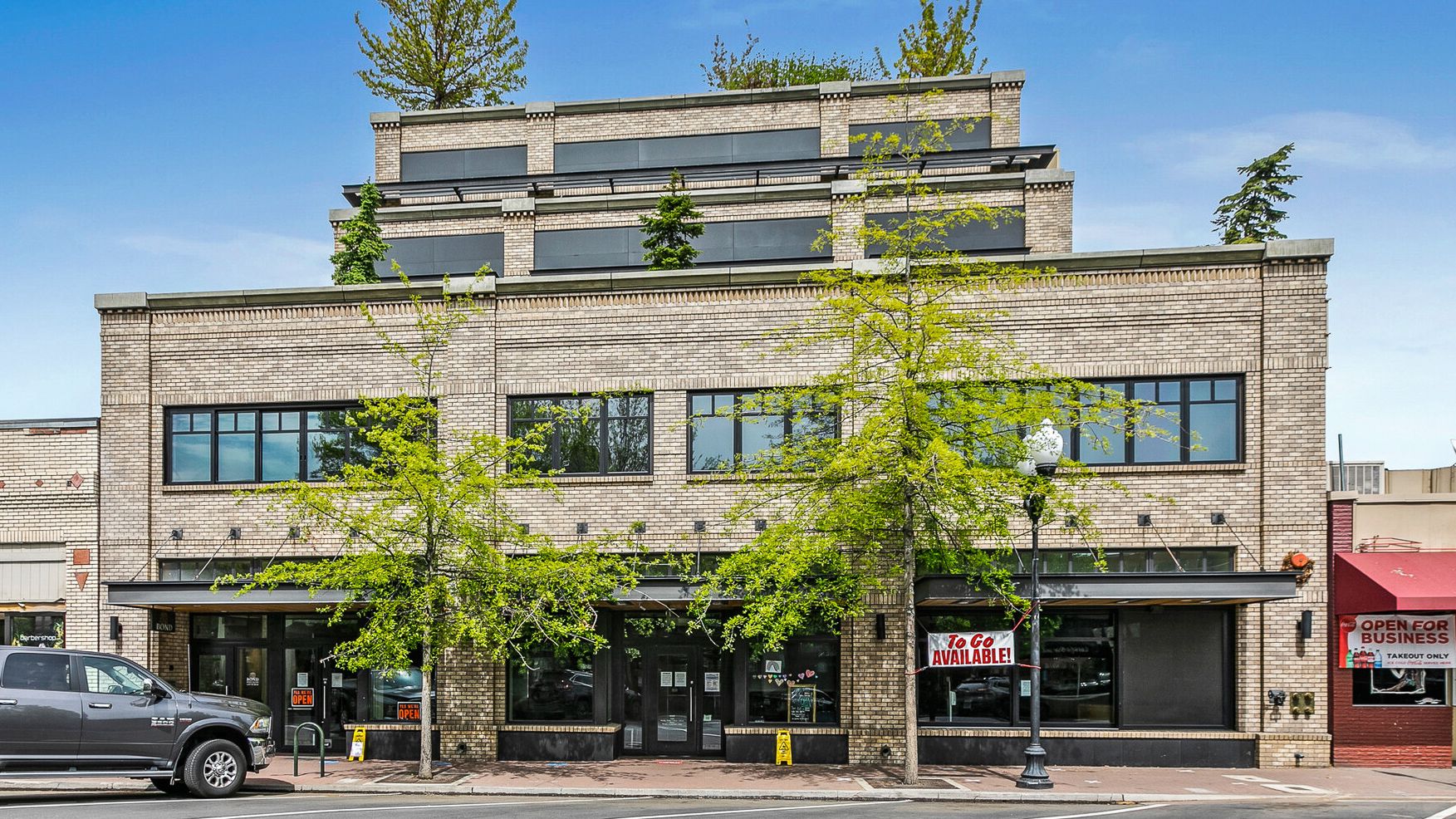 STEELE designed this sustainable four-story mixed-use building which is home to a restaurant, wine loft, office suites and nine condominiums. It features a parking garage accessed from the alley, terraces, and a roof garden.