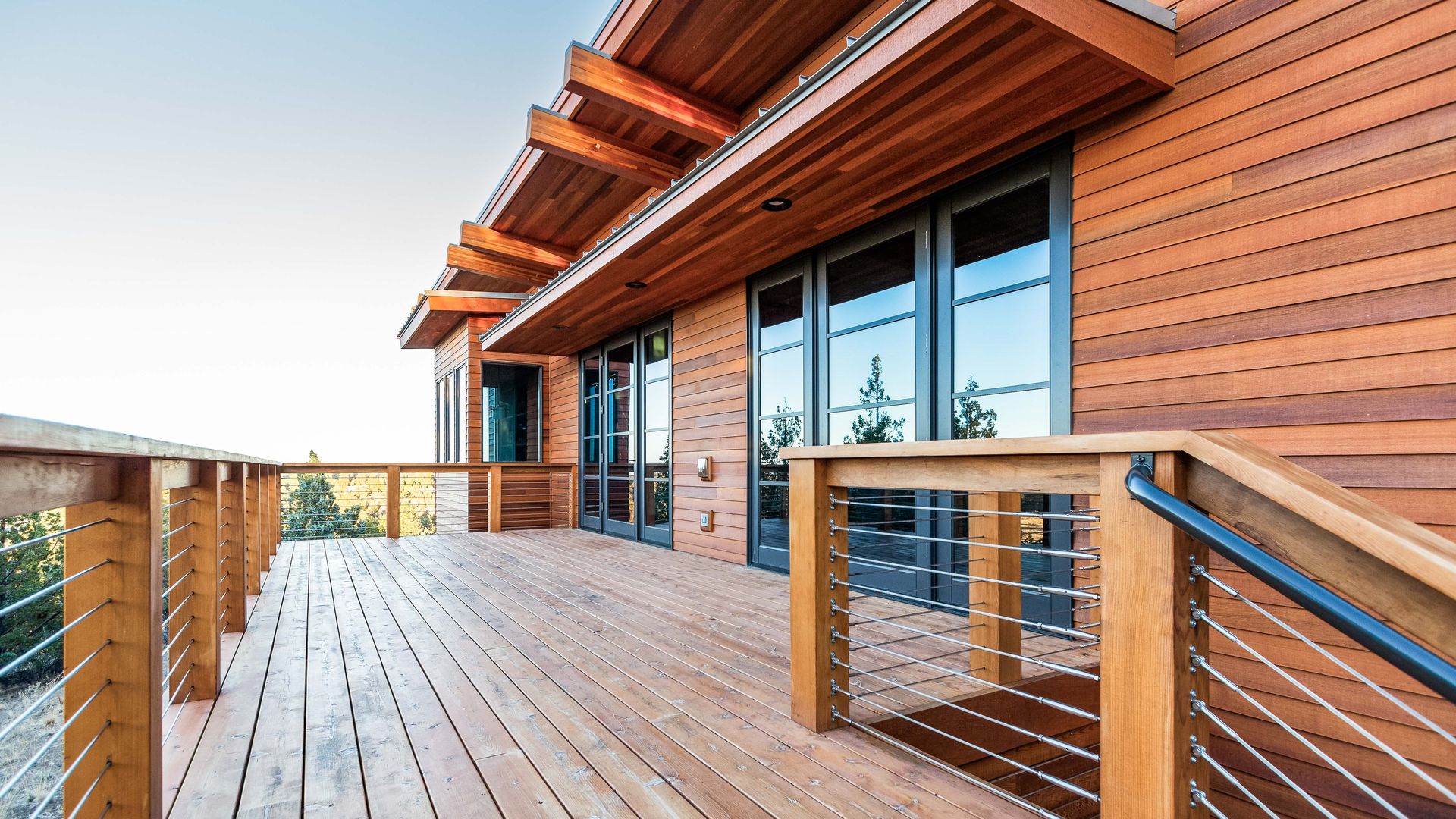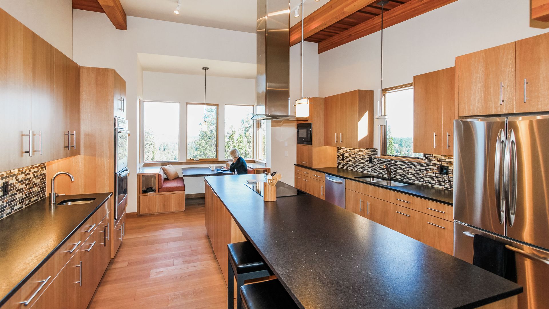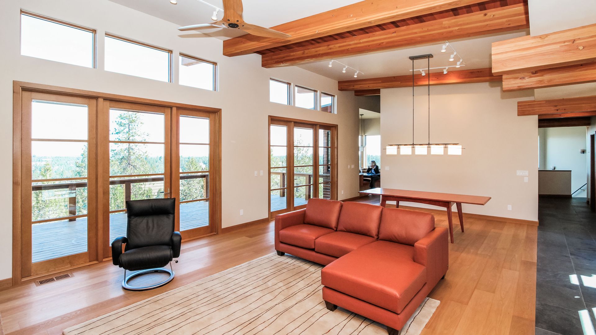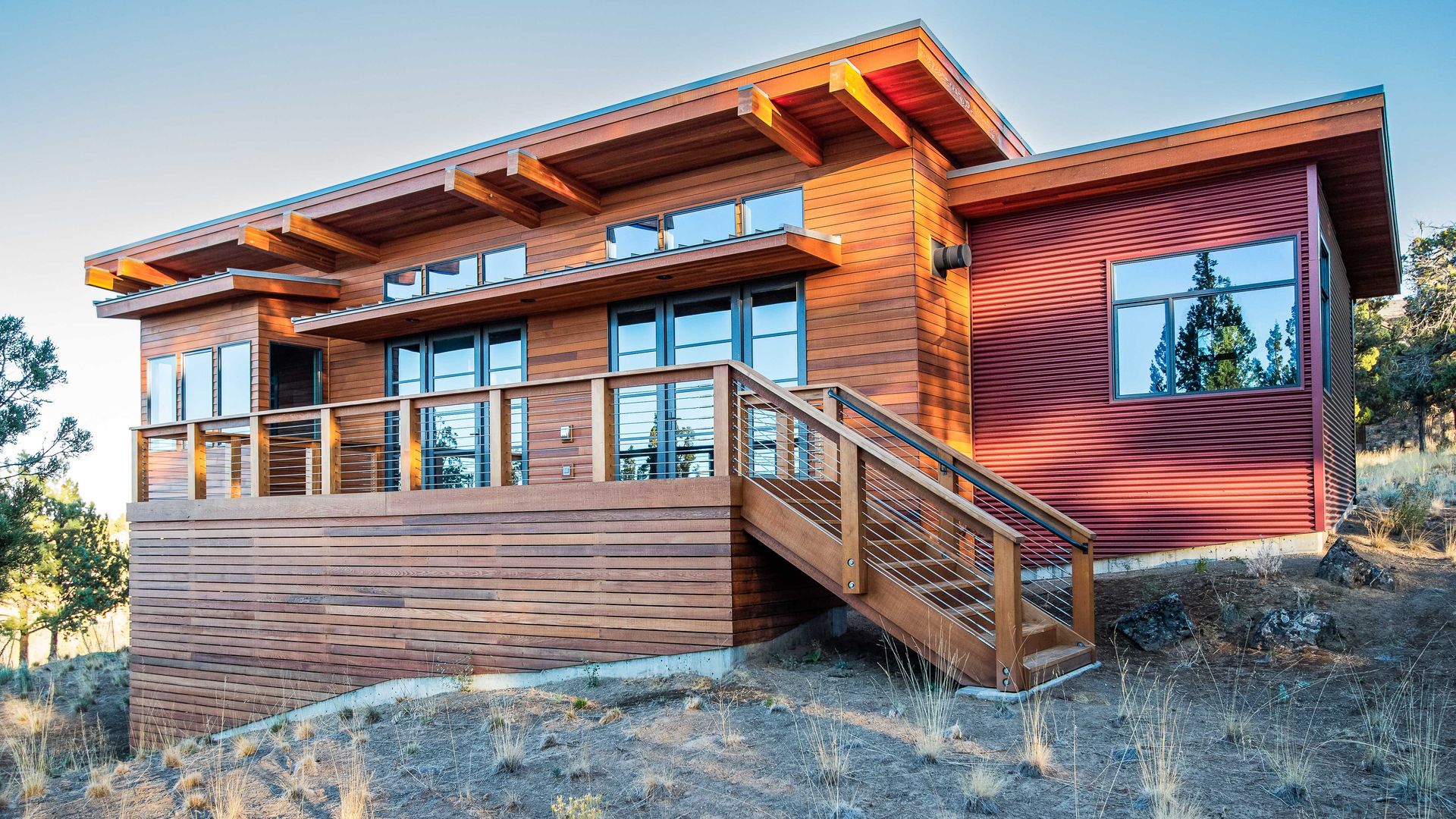 Steele Associates designed this northwest contemporary-modern style home in North Rim. The home was designed to meld into the contours of the site. A beautiful stone and paver entry court complete with a fireplace greets visitors, along with a large deck off the great room and kitchen. Additionally, the main level has a study and master suite, while the day-lit lower level has a media room and two bedrooms.