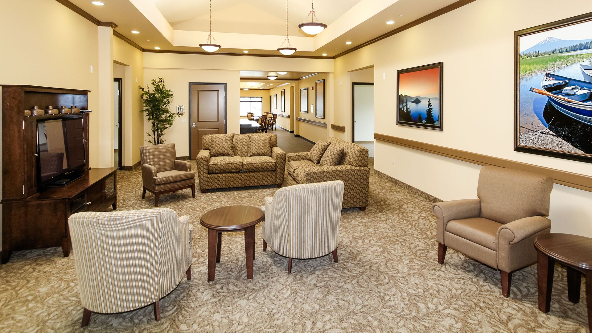 Steele Associates designed this 31,000 SF, 56 bed memory care facility complete with an on-site commercial kitchen, laundry facilities and nursing stations. Resident amenities include a dining room, living room, outdoor courtyards, salon and residential style therapy kitchens. Residents have both semi-private and private rooms in one of four neighborhoods. This is a secured SR-2 facility designed with the flexibility to become a full I-2 group facility.