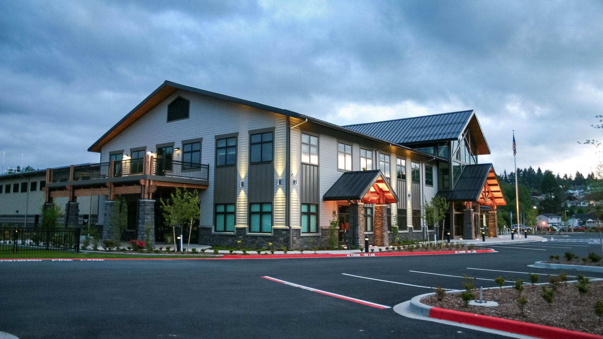 Clatskanie PUD’s new headquarters is a 9.05 acre campus development including a 2-story, 19,000 SF Administration Building housing multiple operations, management and service departments. Some of the sustainable design features include LED exterior lighting, low maintenance landscaping with native vegetation, rain garden filtration system for storm water, and solar-powered hot-water.
